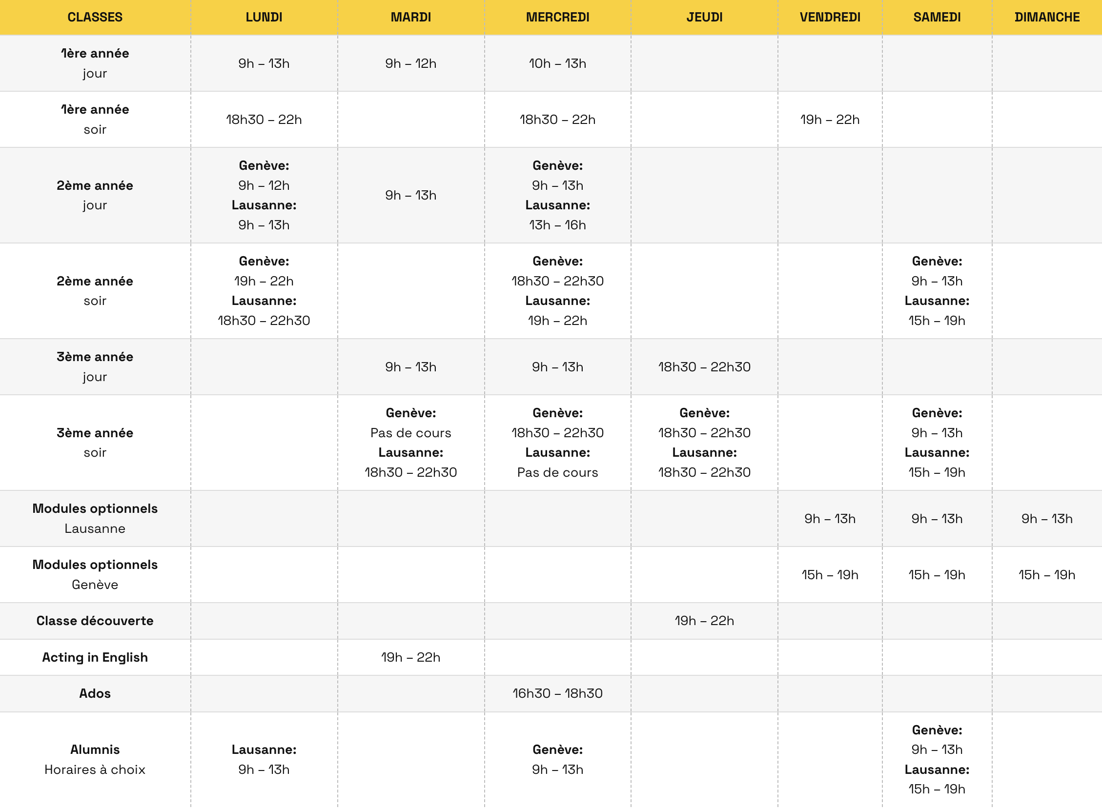 Alumnis Horaires à choix | Lausanne: